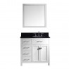 Caroline Parkway 36" Single Bathroom Vanity in White with Black Galaxy Granite Top and Round Sink with Brushed Nickel Faucet and Mirror