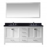 Caroline Avenue 72" Double Bathroom Vanity in White with Black Galaxy Granite Top and Round Sink with Polished Chrome Faucet and Mirror