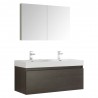 Fresca Mezzo 48" Gray Oak Wall Hung Double Sink Modern Bathroom Vanity w/ Medicine Cabinet