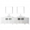 Dior 118" Double Bathroom Vanity in White with White Engineered Stone Top and Square Sink with Polished Chrome Faucet and Mirrors