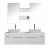 Augustine 59" Double Bathroom Vanity in White with White Engineered Stone Top and Square Sink with Polished Chrome Faucet and Mirrors