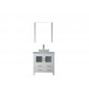 Dior 36" Single Bathroom Vanity in White with Aqua Tempered Glass Top and Square Sink with Brushed Nickel Faucet and Mirror