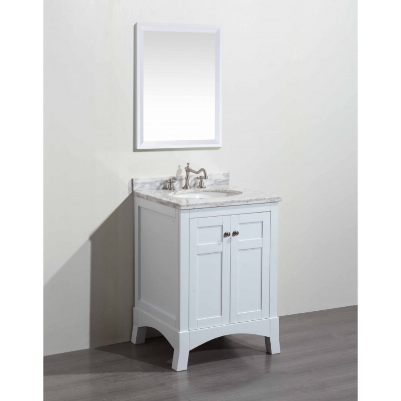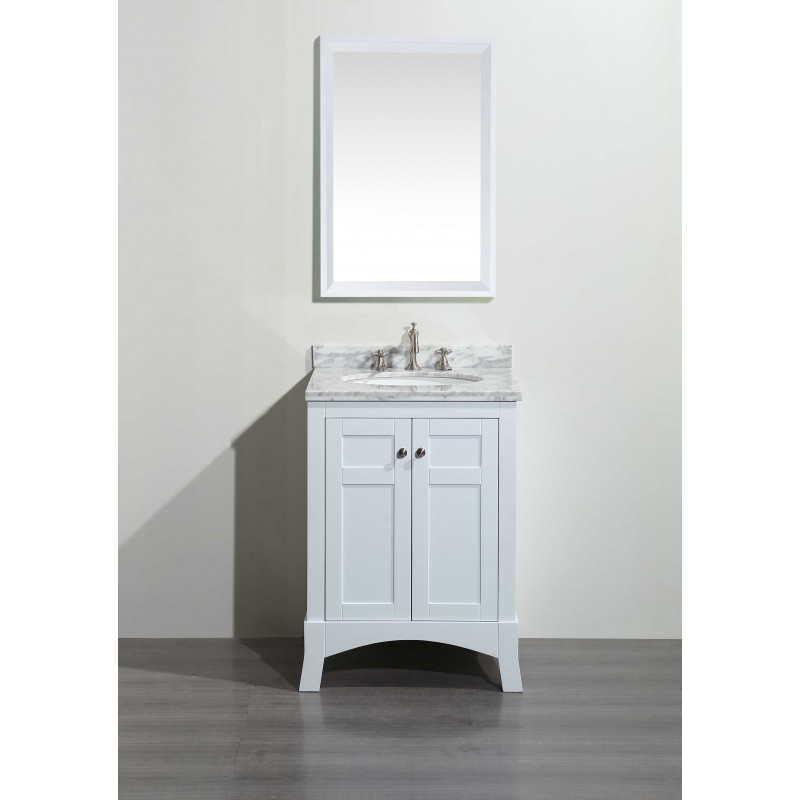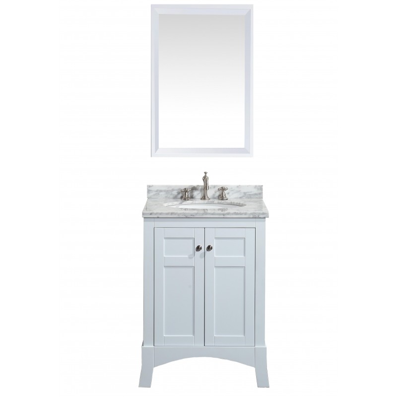 Eviva New York 24" White Bathroom Vanity, with White Marble Carrera Counter-top, & Sink