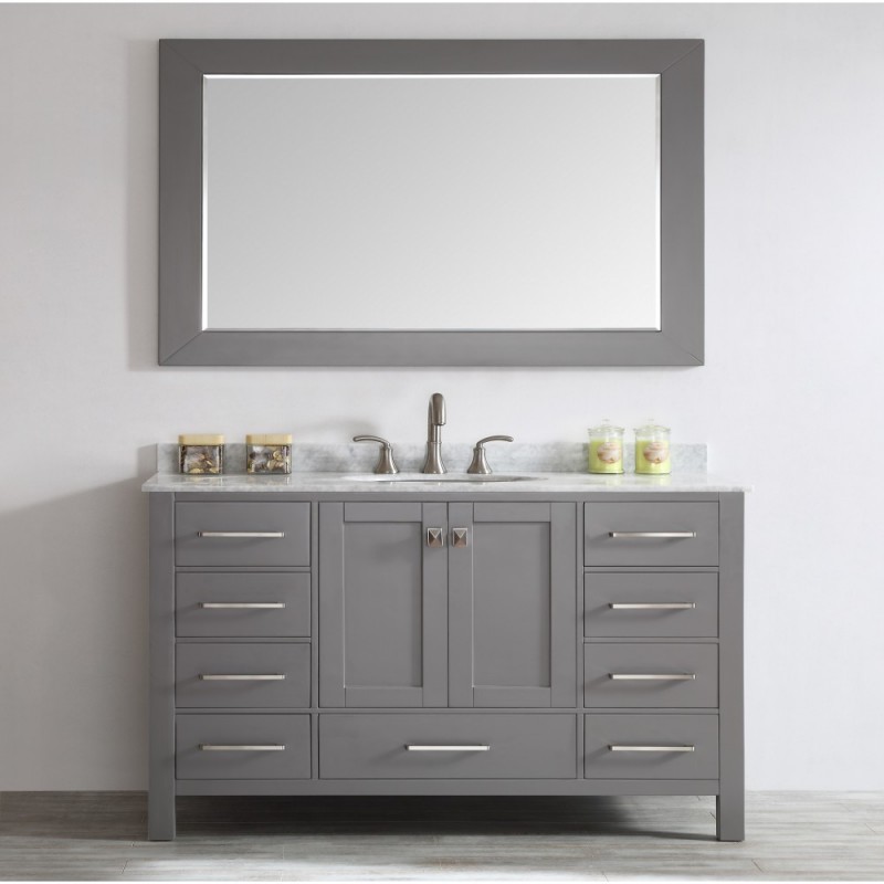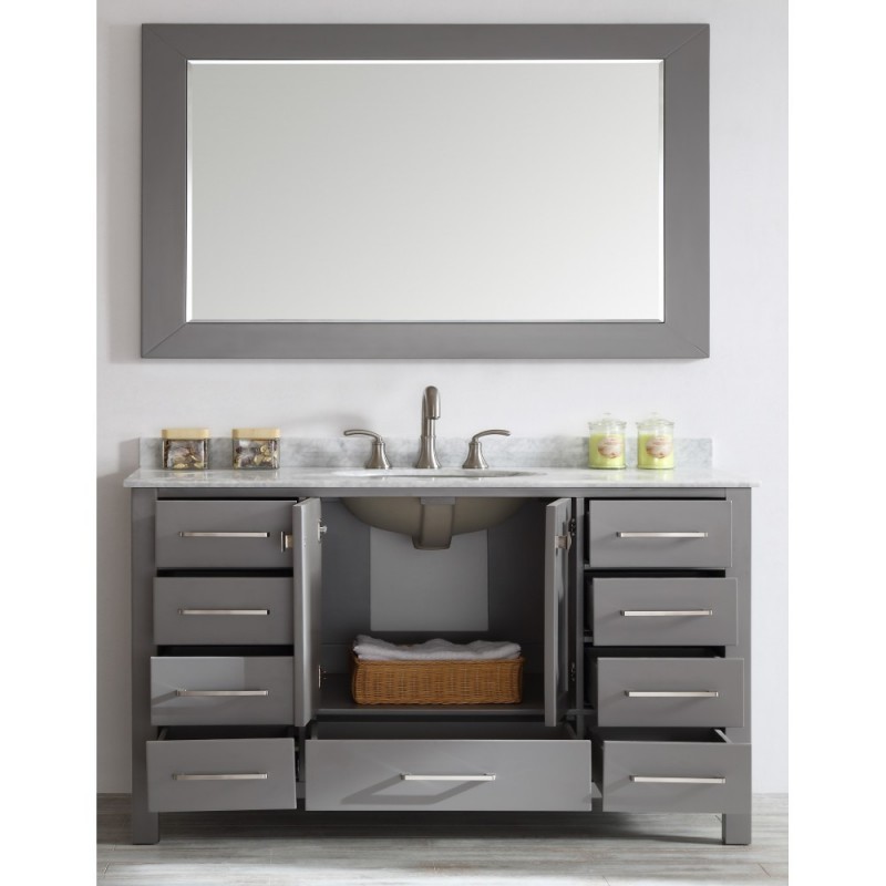 Eviva Aberdeen 60" Transitional Grey Single Bathroom Vanity with White Carrera Countertop