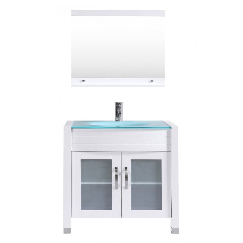 Eviva Roca 36" White Bathroom Cabinet with Integrated Glass Tempered Sink