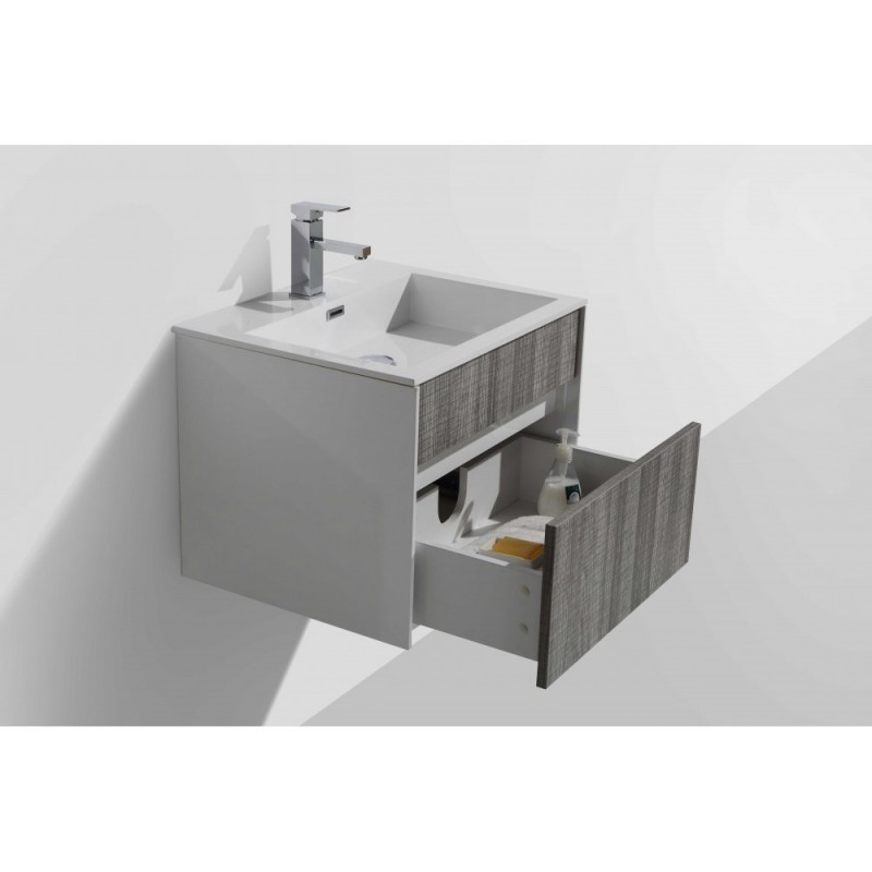 Eviva Ashy 24" Wall Mount Modern Bathroom Vanity Set Ash Gray (Grey) with White Integrated Sink