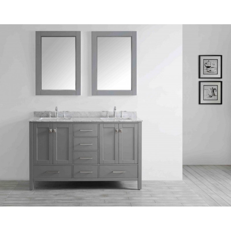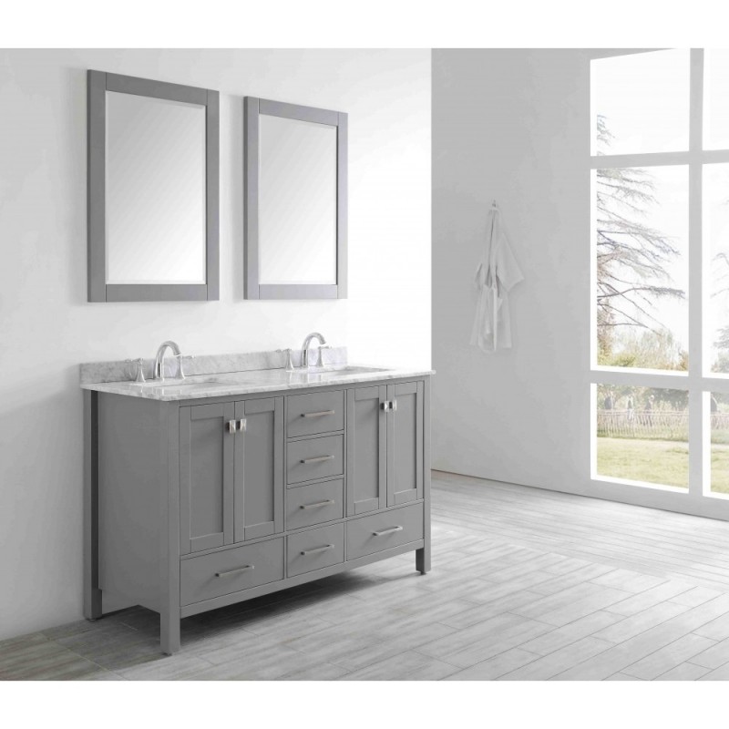 Eviva Aberdeen 60" Transitional Grey Bathroom Vanity with White Carrera Countertop & Double Square Sinks