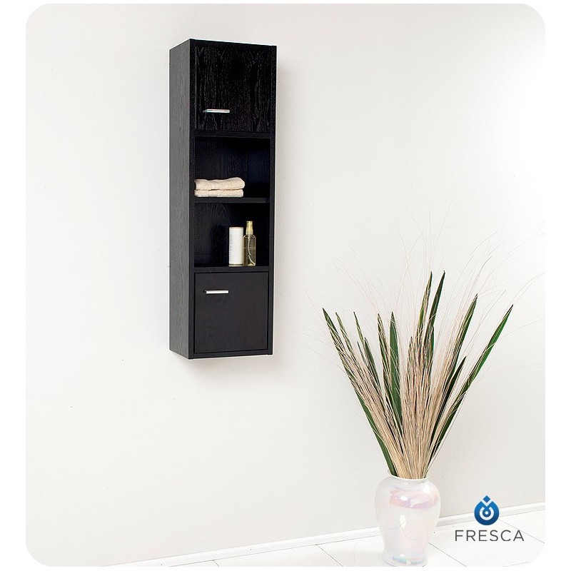 Fresca FST2018WG Black Wenge Wood Finish Bathroom Linen Cabinet with Open Shelves