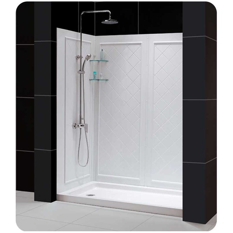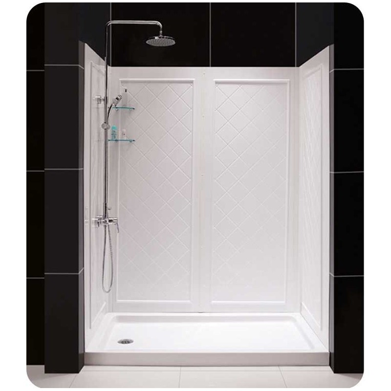 "This smart kit from DreamLine offers the perfect solution for a bathroom remodel or tub-to-shower conversion project with a BUTTERFLY bi-fold shower door, universal shower backwall panels and a coordinating SlimLine shower base. The BUTTERFLY shower door is comprised of two sets of bi-fold panels that provide an ample walk-in opening while saving space. The SlimLine shower base incorporates a low profile design for a sleek modern look, while the shower backwall panels have a tile pattern. Choose a beautiful and efficient DreamLine shower kit to completely transform a shower space. SHOWER DOOR: Space-saving frameless bi-fold door Clear glass door reversible for "right" or "left" door opening Tempered 1/4" (6mm) clear glass Anodized aluminum profiles and guide rails Chrome finish Out-of-plumb adjustment up to 3/4" on each side for easy installation SHOWER BACKWALL: 6 integrated soap or accessory shelves 2 convenient corner foot rest Made of high quality Acrylic / ABS Unique water proof connection of 2 sidewalls, 2 corner panels and 1 back panel Trim-to-Size sidewall design for shower bases from 29 7/8" to 40 1/2" deep. Must be trimmed during installation Designed for height of the glass not to exceed 72 7/8" Acrylic wall systems are designed to be installed over existing solid surface not directly against the studs SHOWER BASE: Single threshold shower base Low profile. cUPC certified High quality scratch and stain resistant acrylic Slip-resistant textured floor for safe bathing Integrated tile flanges for easy installation and waterproofing Fiberglass reinforcement for durability Drain not included"