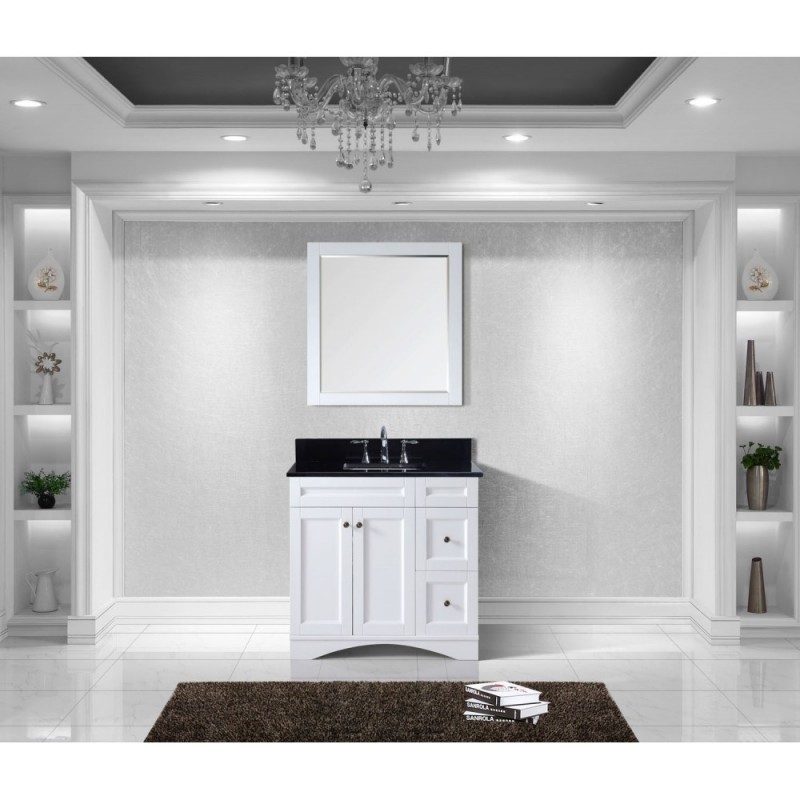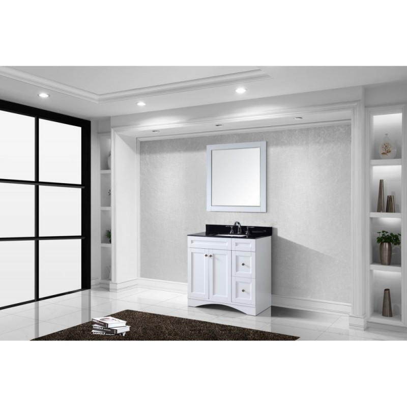 Elise 36" Single Bathroom Vanity in White with Black Galaxy Granite Top and Square Sink with Mirror