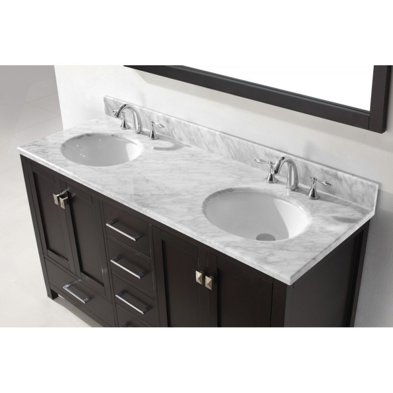Caroline Avenue 60" Double Bathroom Vanity in Espresso with Marble Top and Round Sink with Brushed Nickel Faucet and Mirror