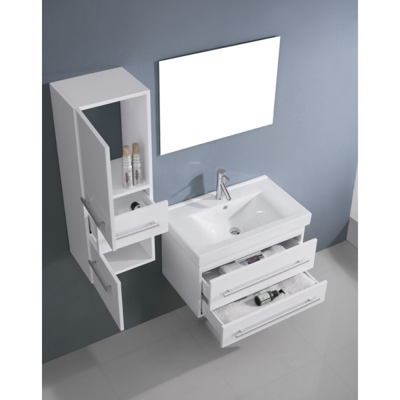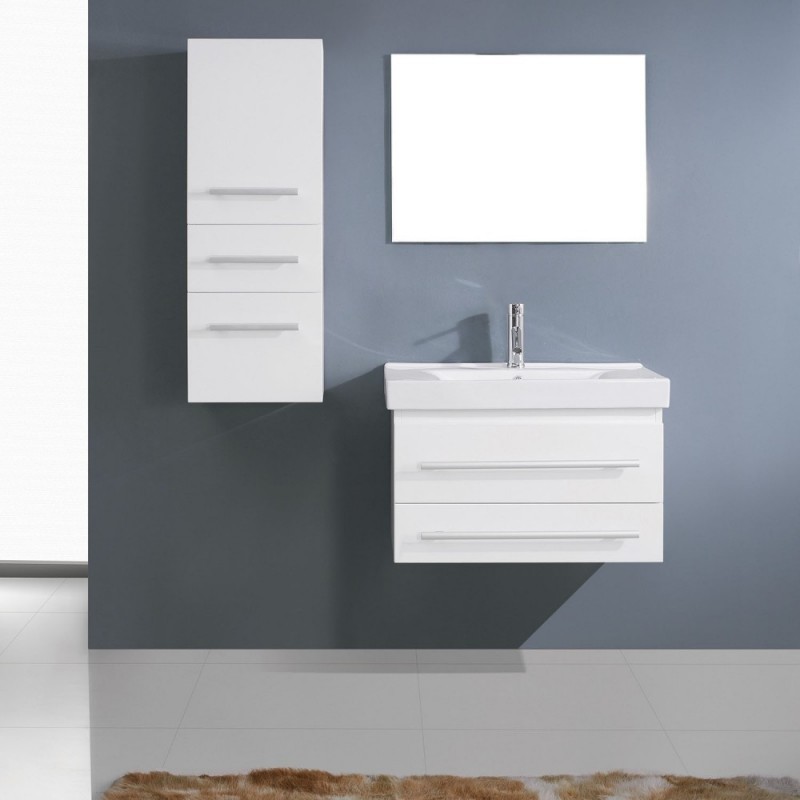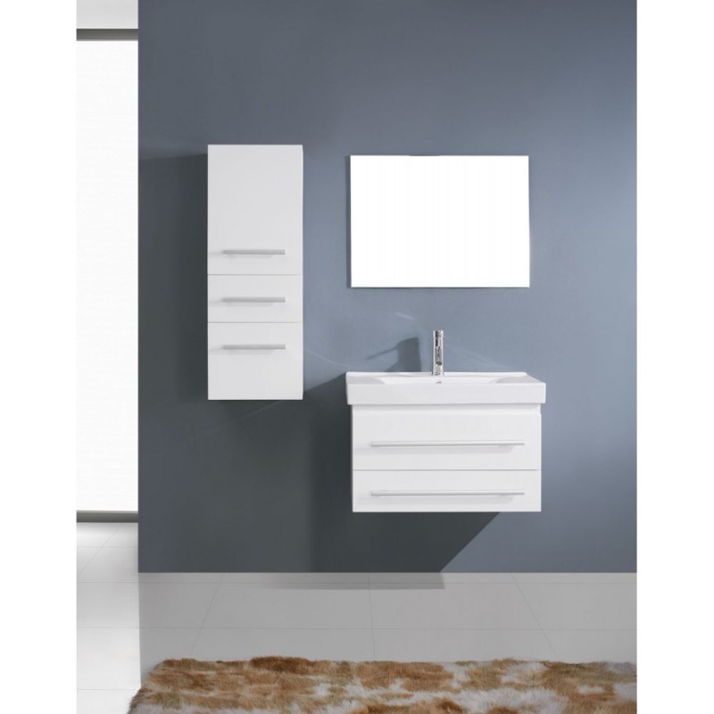 Antonio 30" Single Bathroom Vanity in White with White Ceramic Top and Square Sink with Polished Chrome Faucet and Mirror