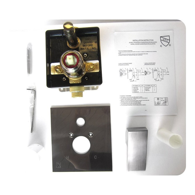 ALFI brand AB5601-BN Brushed Nickel Shower Valve Mixer with Square Lever Handle and Diverter